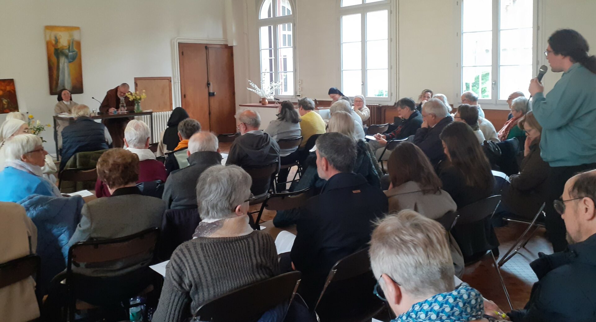 Durant ce week-end, Frère Éric Bidot, capucin, a proposé un enseignement intitulé « Lecture écologique du Cantique des Créatures » et Sœur Marie Noëlle a présenté « Écoutez petites Pauvres », poème composé par François pour Claire et ses sœurs.